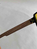 دارای دسته با طرح چوب و رنگ های مشکی، مشکی دسته قهوه ای، زرد و سفید با عدسی سبز
