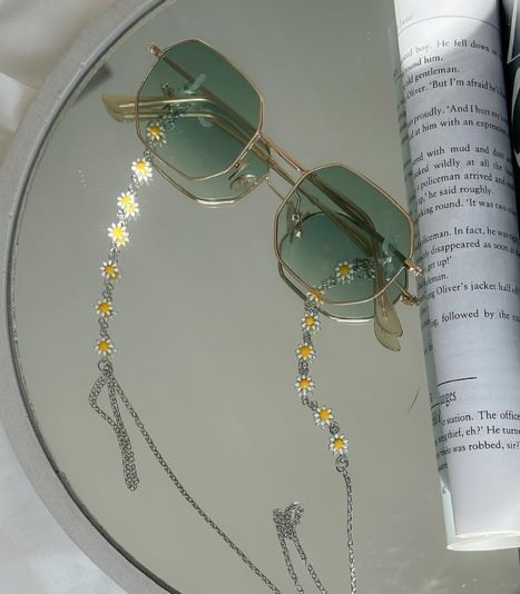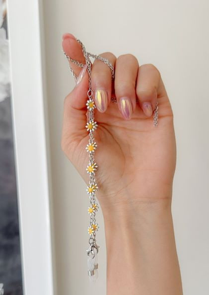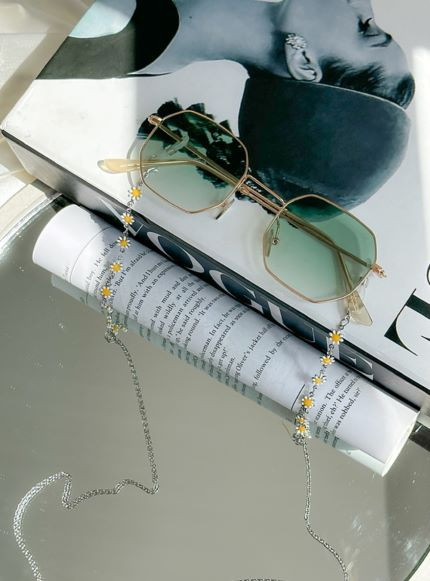 بند عینک زنجیری مدل گل بابونه نقره ای