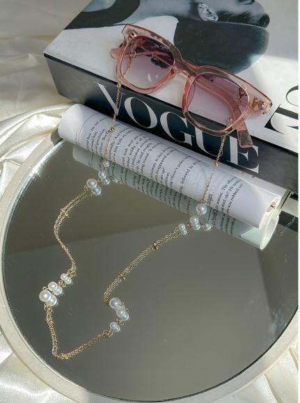 بند عینک مرواریدی زنجیری طلایی